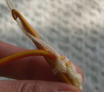 ゴムの長さによって目数は変わってきますが、これをぐるっと1周編みます。
